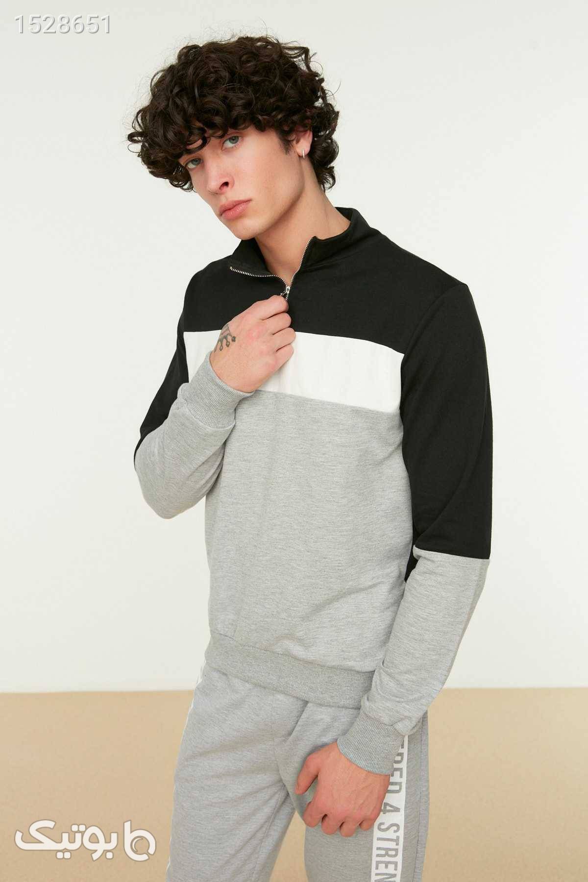 مدل سوییشرت اسلیم فیت یقه دیپلمات آستین بلند زیپدار خطدار مردانه مشکی برند TRENDYOL MAN کد 1694782570