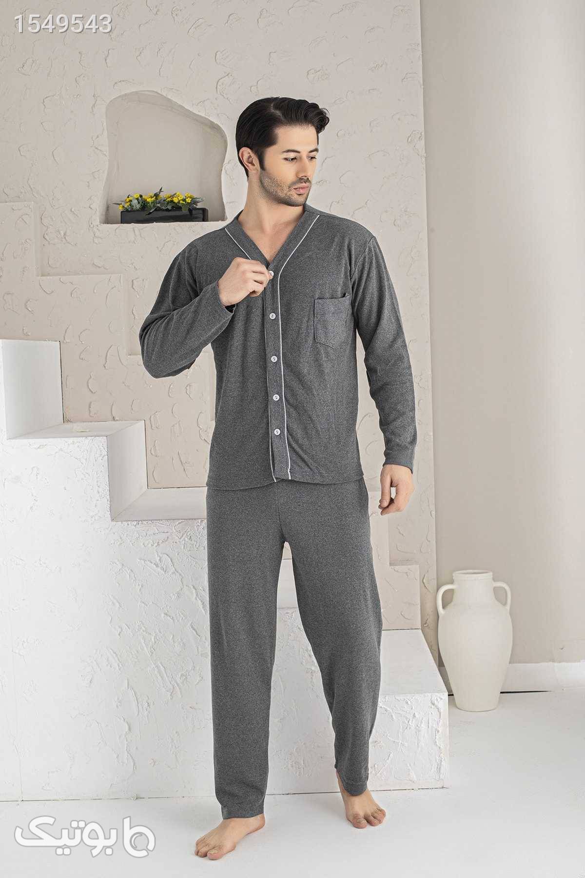 لباس راحتی بافتنی دکمهدار پارچه از جلو آستین بلند ملانژ دودی مردانه برند MİRELLA کد 1701042390