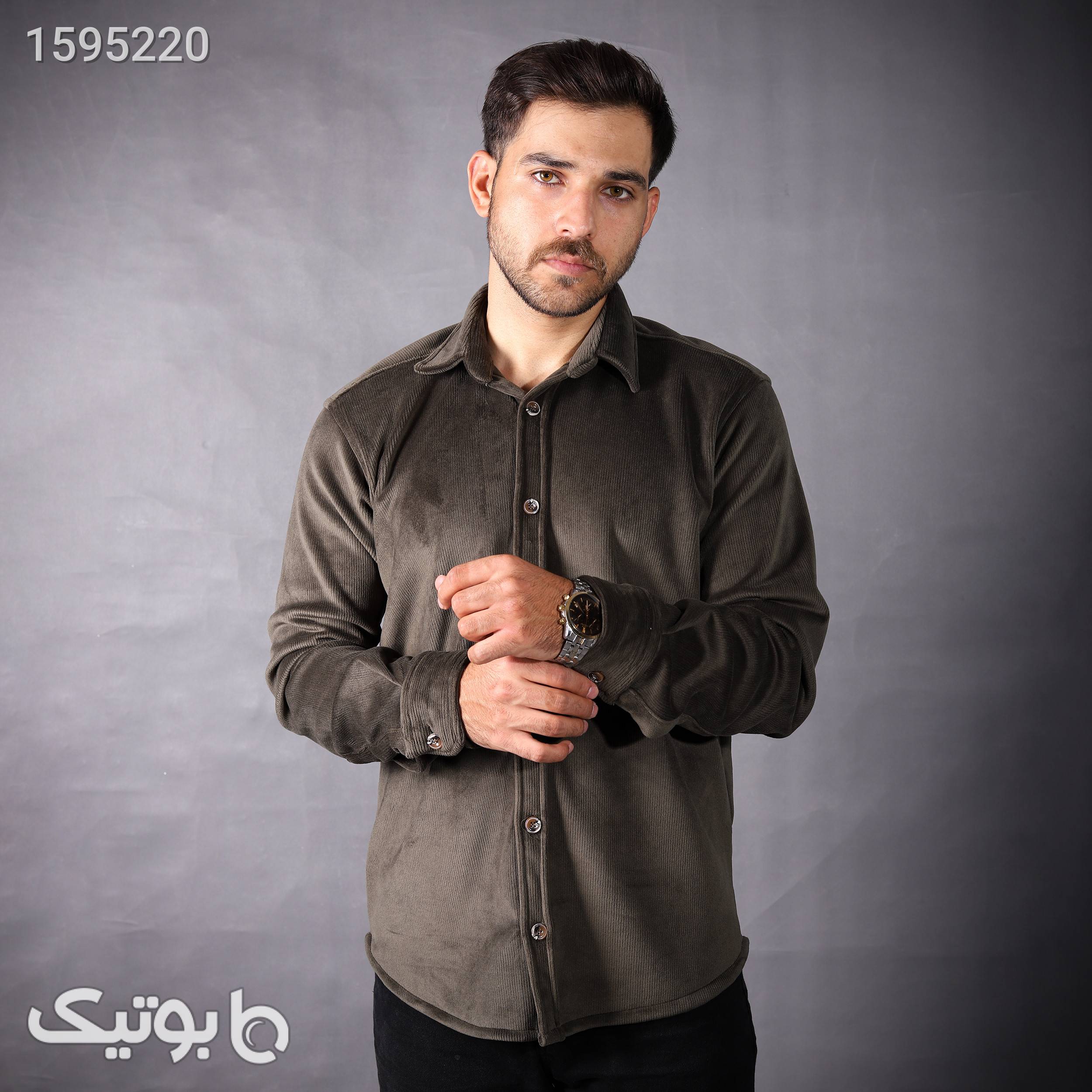 مدل پیراهن آستین بلند مردانه مدل مخمل 2580 رنگ سبز