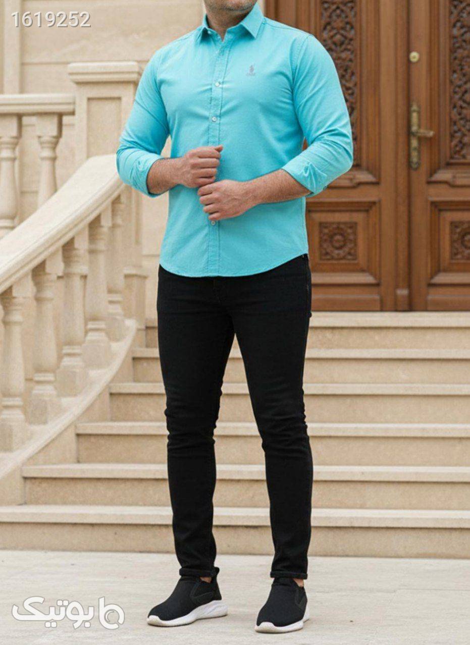 مدل پیراهن مردانه آستین بلند آبی مدل 1936